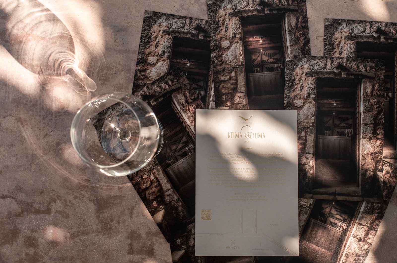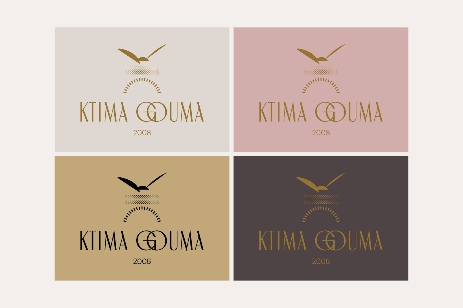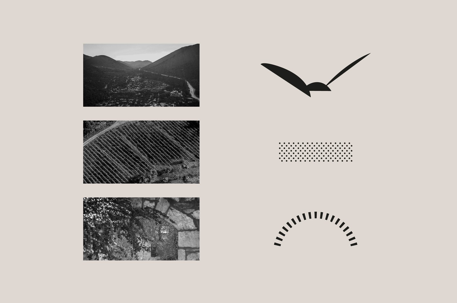Ktima Gouma (Goumas Estate) is a traditional winery in Trilagada, a semi-mountainous location near Maries Village in Zakynthos. The family-run winery produces select wines from time-honored native varieties. The people at Ktima Gouma trusted me to design their business's new visual identity to match their products’ refined, connoisseur-grade quality. For the rebranding, I drew inspiration from the location's geomorphology, the restored centuries-old premises' look and feel, and the winemaker's other passion, religious iconography. The new logotype consists of three symbols arranged vertically. At the top are the three dales (lagadia), after which the winery's location takes its name (Tri-lagada). The middle symbol represents the Goumas vineyards. Right below, are the estate's arched gates. The symbols’ vertical arrangement references the Byzantine script used in Orthodox iconography, a nod to the owner's artistic work. Underneath, the winery’s brand name is set in an elegant typeface (Musetta Regular by atipo foundry) with long and narrow elements that aesthetically match that vertical set-up. Finally, the brand colors were inspired by construction elements found across the estate: stone, wood, soil, and the conspicuous pink stucco adorning the winery's walls, which is made with crimson iconography paint.