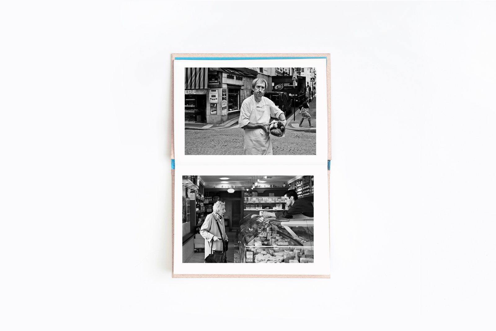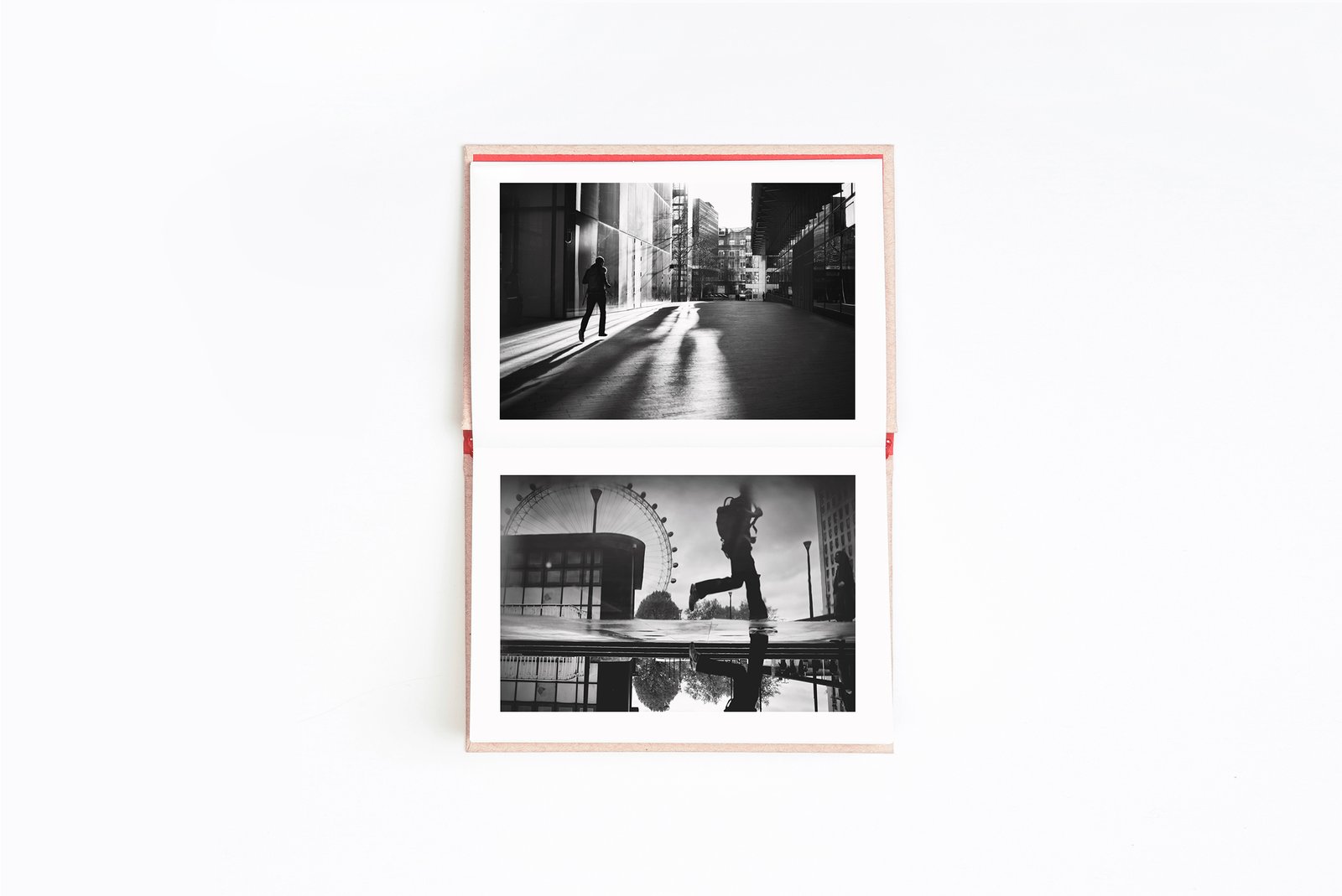 London and Paris are compositions of black and white images that purposely remind us of the instant memories represented in postcards. Each spread comprises two autonomous photographs that can be rotated, allowing for an increased flexibility in the reading process. To accentuate this freedom, the books do not have a beginning or an end, and become independent interactive objects. The design of the cover plays upon the same idea of rotation.