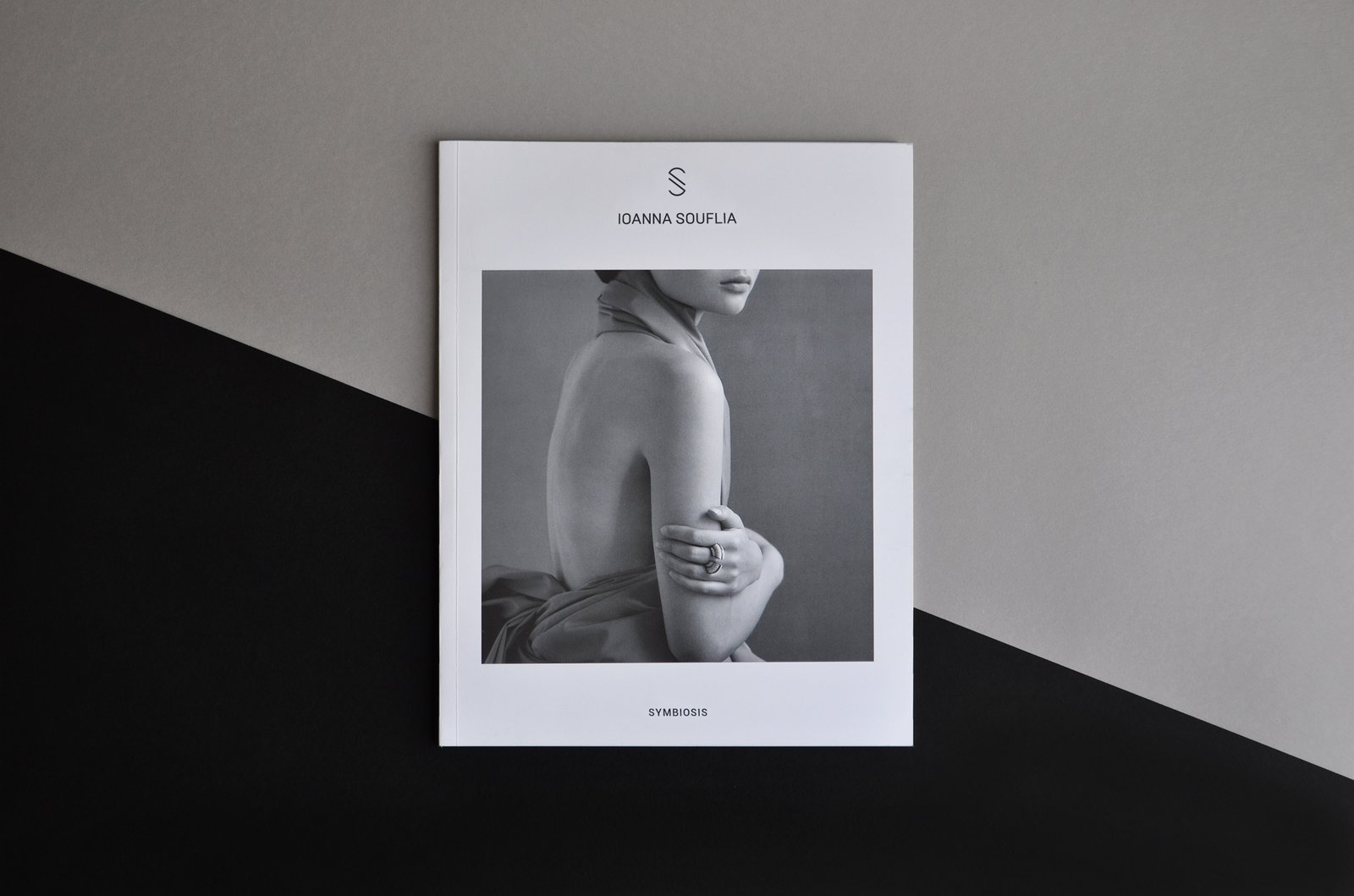 The look book presents the precious jewelries as sculptural pieces which stand in the central point creating dialogues with the photographs and co-exist in a symbiotic relationship. The contrast of black and white flows inside the pages with minimal forms and different sizes creating a harmonic final result which engages the whole collection and reflects the brand’s aesthetic and the designer’s vision of precious jewelry.